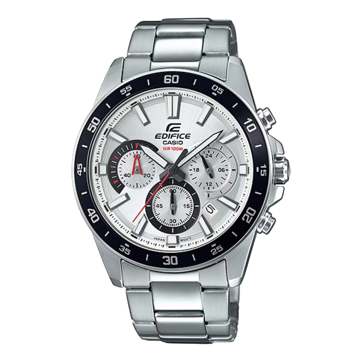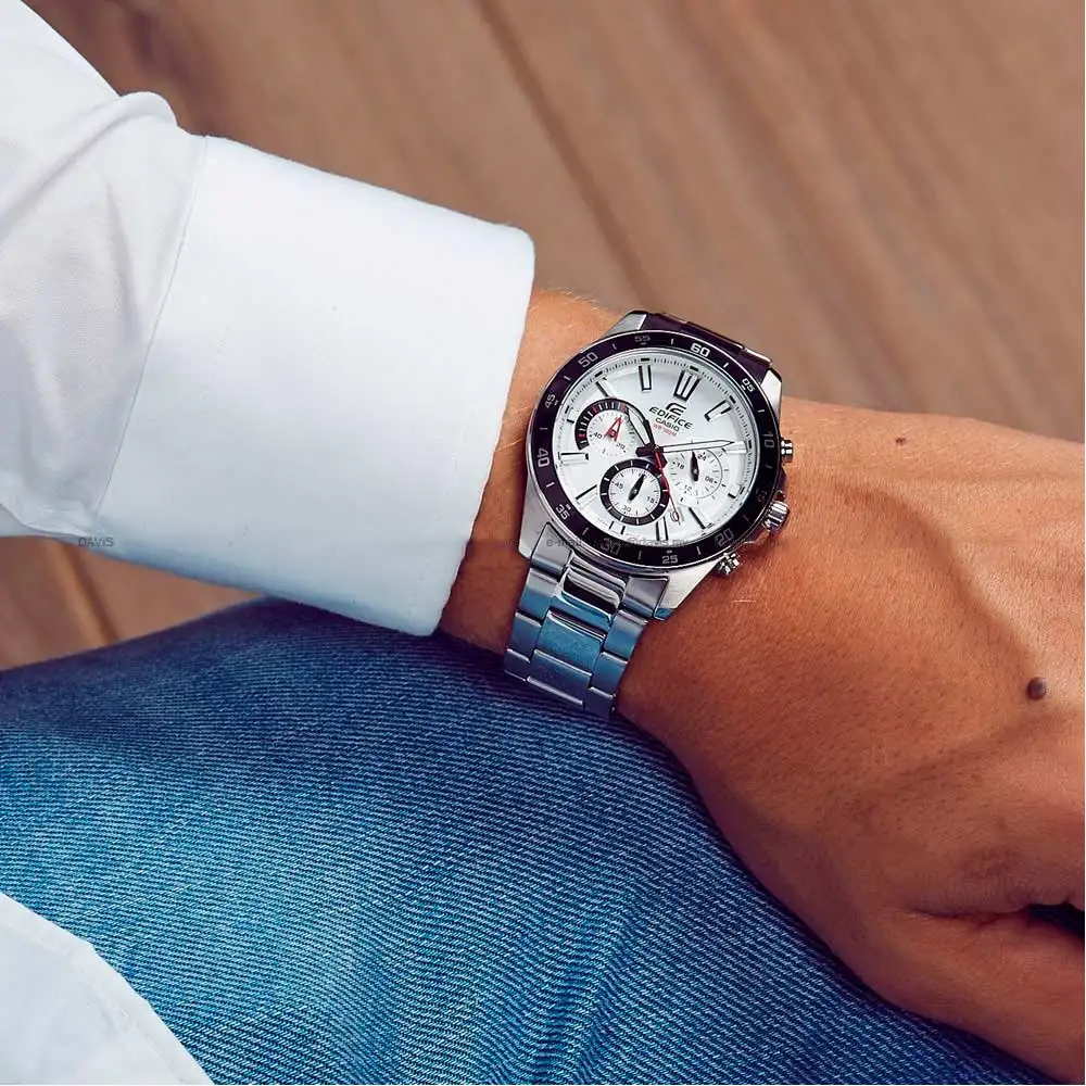 Affichez un look sophistiqué avec la Casio Edifice EFV-570D-7AV, une montre Casio homme qui marie à merveille design sportif et raffinement. Son cadran blanc épuré, ses sous-cadrans chronographes et son bracelet en acier inoxydable en font un modèle à la fois moderne et élégant.