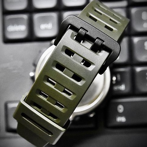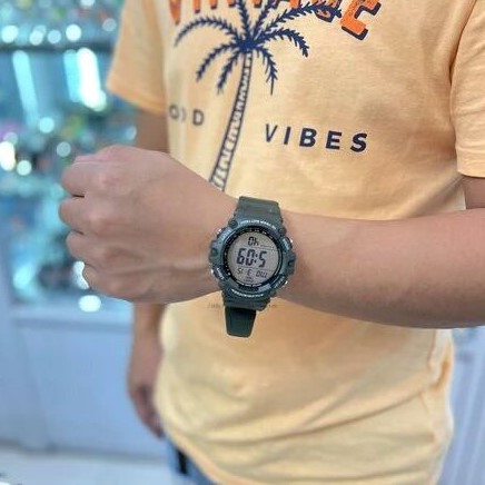 Conçue pour résister à un usage intensif, cette montre est étanche jusqu’à 100 mètres et dispose de toutes les fonctions essentielles : chronomètre, double heure, compte à rebours, alarme et rétroéclairage LED. Son bracelet en résine verte assure confort et légèreté au poignet, même lors d’activités prolongées.