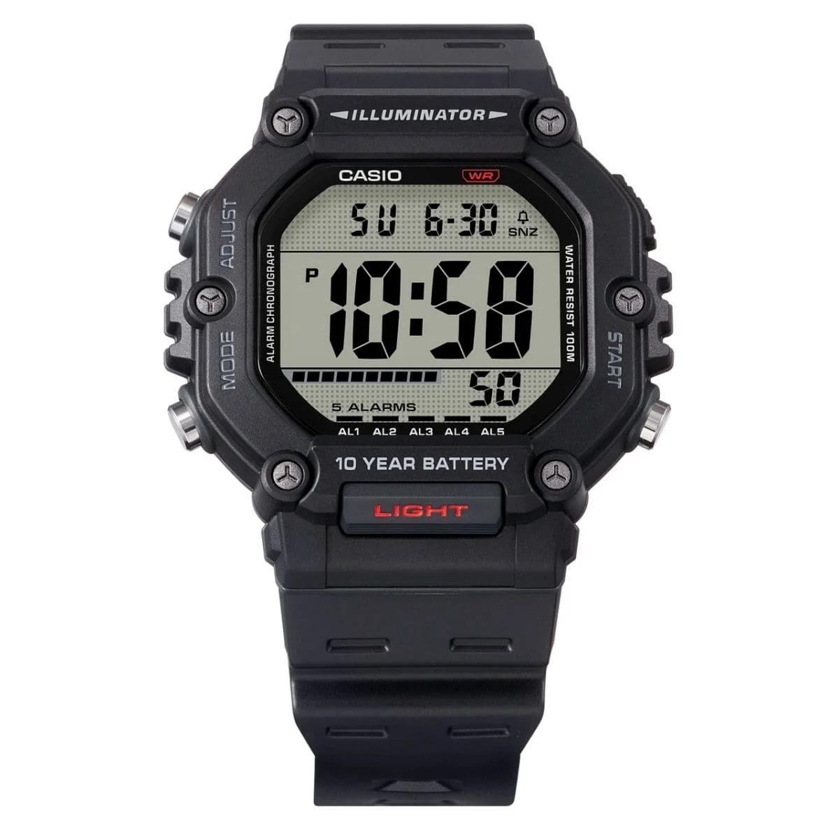 Découvrez ce modèle digital robuste, doté d’une autonomie de 10 ans, d’une résistance à l’eau 100 m, d’un éclairage LED, d’un chronomètre et de multiples alarmes. Parfait pour un usage quotidien ou sportif.