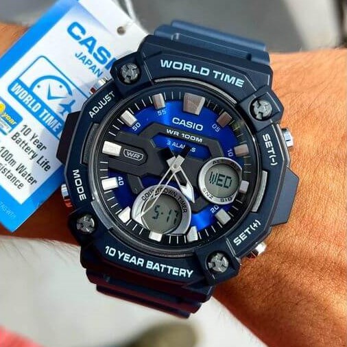 Adoptez un style sportif et contemporain avec la Casio AEQ-120W-2AV, une montre analogique-digitale conçue pour les hommes actifs qui recherchent performance, fonctionnalité et durabilité. Avec son design bleu profond et son cadran audacieux, elle offre une allure dynamique parfaite pour le quotidien ou les activités outdoor.