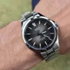 Cadran noir élégant avec aiguilles et index argentés
